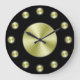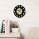 Une simple horloge murale avec un arrière - plan noir, des mains noires et des cercles dorés pour marquer les heures et un petit visage doré. Cliquez sur Customiser pour ajouter du texte ou des images personnalisées, modifier les couleurs des arrière - plans, etc.