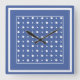 Une horloge murale carré très chic, dans le bleu foncé à la mode (Monaco) avec pois blancs et rayures.