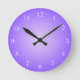 Un design imprimé clair violet éclairé sur l'horloge murale. Cette conception a des éclaboussures comme la neige, et des chiffres blancs.Lumineuse et joyeuse cette horloge vient en deux tailles rondes. Note : Il ne s'agit pas d'un produit Led et il s'agit d'un dessin imprimé uniquement