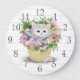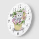 Chaton blanc dans le panier Horloge murale