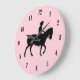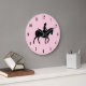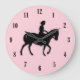 Joli design rose avec une fille sur un cheval / poney au centre. Douze nombres noirs, un par heure