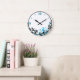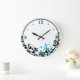 Horloge murale florale bleue, noire, et blanche au néon. Vous pouvez ajouter le texte pour customiser cette conception. Le nombre de couleur à employer pour le bleu au néon est 00b6df. Vous pouvez également changer la couleur d'arrière - plan et même ajouter des photos si vous voulez.