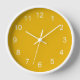 Horloge murale jaune moutarde. Design simple et élégant de couleur moutarde simple, avec des heures blanches.
