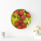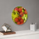Cette horloge étonnante présente une photographie d'un mélange d'ingrédients de salade dans une passoire. La photo appétissante comprend des tomates, des radis, des oignons nouveaux et des laitues.
