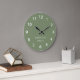 Cette horloge murale minimaliste Sage Vert Personnalisée moderne est facile à personnaliser en tapant votre choix de nom de famille ou d'un libellé similaire dans le modèle de personnalisation avant de commander. Le design comprend les nombres et la personnalisation en blanc sur un simple arrière - plan "sage vert", afin que le temps puisse être facilement vu par les adultes et les enfants.