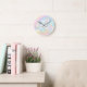 Horloge Licorne avec une licorne pastel et des cœurs sur un beau fond aquarelle pastel. Cette horloge Licorne peut être personnalisée avec du texte.
