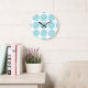 Horloge murale Pois Zebra, mignonne et tendance. Ce design présente des cercles de motif d'impression zèbre amusants en bleu turquoise et blanc. Un texte peut être ajouté à cette conception pour lui donner une touche personnelle.