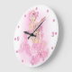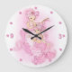 Jolie horloge murale pour fille, avec des graphiques de deux sirènes frileuses roses et des chiffres roses et des points pour les heures. Customisez d'ajouter du texte à cette horloge douce. Ça fait une idée de cadeau.