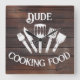 Apportez de la personnalité et de l'humour à votre cuisine ou à votre coin grill avec cette horloge murale rustique « Dude Cooking Food » !