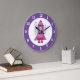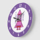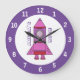 Horloge murale Astronaute et Fusée spatiale avec nom pour filles / thème spatial. Cette horloge murale a un vaisseau spatial en rose et violet. Personnalisez l'horloge avec le nom d'un enfant - vous pouvez modifier ou effacer n'importe quel texte. C'est une idée-cadeau mignonne pour un anniversaire pour les filles ou simplement une décoration pour la chambre des enfants. Un cadeau unique pour fille, petite-fille ou nièce.