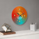 Un design d'horloge très décoratif avec un fond à effet lumineux Aqua rouge/orange. Les chiffres sont représentés par des cercles de couleur or. Un design d'atmosphère inspiré du Moyen-Orient ou de l'Europe. Un cadeau d'occasion pour toute personne ou pour ajouter un peu de pep à une pièce spéciale de votre maison ! Jilly