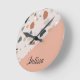 Cette horloge est à moitié bloc solide de pêche et moitié terrazzo imprimé. Ses couleurs sont dans des tons neutres ou neutres modernes. Vous pouvez également le rendre unique en le personnalisant. Cette horloge murale décorative aurait l'air de maisons de ferme modernes, minimes et même les maisons de ferme en raison de ses couleurs.