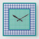 Une horloge murale élégante et à la minute, avec un motif mixe'n'match de ginghams à Emerald Green et Monaco Blue.