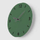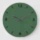 Une horloge murale "Hunter Green" de couleur moyenne et solide avec des chiffres noirs. Hunter Green ou Hunter's Green est vert foncé moyen. Cliquez sur "Personnaliser" pour changer de couleur ou pour ajouter un motif ou un design. Code hexadécimal du produit : #355e3b