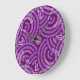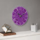 Une horloge murale couleur violet graphique audacieuse unique. Ce motif original de Sarah Trett est une pièce de théâtre sur les liens entre cercles. Très bien situé dans une chambre ou un salon violet, une cuisine ou un bar.