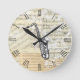 Un saxophone vintage est installé contre un collage arrière - plan de partitions vintages pour faire cette belle horloge, parfaite pour un musicien ou un amoureux de la musique, ou pour s'intégrer à votre décor de chambre à thème vintage. D'autres éléments musicaux vintages et des designs sont disponibles dans ma boutique Zazzle.