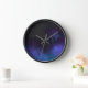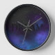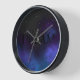 Horloge murale avec le mot 'rêve' en lettres majuscules noires solides sur un fond de ciel nocturne étoilé doux parmi des nuages d'espace nébuleux bleu et violet. Subtil, sombre et profond comme le royaume mystérieux des rêves. Utilisez le modèle de texte pour ajouter un nom ou une citation courte inspirante. ♡ Idyllfire