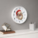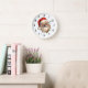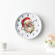 Une horloge avec une joyeuse illustration d'un Père Noël de style vintage aux joues rouges roses. portant son chapeau de Père Noël rouge classique et son grand ours blanc. Un spring de saint ajoute à l'esprit festif de fête de ce design.