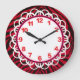 Une belle horloge pour ceux qui aiment les posters de animaux. . y compris les posters de animaux qui sont un peu plus insolites ! Une impression zébrée noire et rouge couvre la base de l'horloge, tandis que la face blanche est recouverte de couleurs qui se coordonnent bien avec l'impression - chiffres rouges, dentelle blanche, et anneaux de bordure rose/noir chaud.