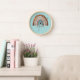 Décorez votre chambre de pépinière ou de tout-petit avec cette horloge Boho Rainbow Blue Nom personnalisé