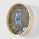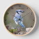 Horloge Oiseau chanteur Geai bleu mignon posant sur une so