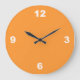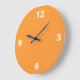 Une simple horloge murale avec un arrière - plan orange clair et de grands nombres blancs marquant les 12, 6, 9 et 3. Pour tout décor orange cuisine ou chambre. Cliquez sur Customiser pour ajouter votre texte personnalisé, modifier les couleurs des arrière - plans et plus encore.
