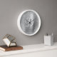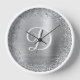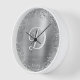 Bordure de parties scintillant circulaire en argent Faux et art numérique en papier gris argenté métallique (imprimés comme une photo sur ces horloges murales). Customisez la taille de police du script moderne de calligraphie blanche. Ajoutez un nom pour créer votre propre monogramme personnalisé pour elle.