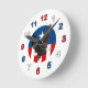Cette horloge est décorée d'un aigle américain, d'un drapeau étoilé et d'un visage rouge, blanc et bleu. Une horloge de cuisine patriotique et lumineuse. Une merveilleuse idée cadeau.