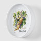 Cette horloge murale est montrée dans un élégant imprimé de raisins de campagne de vin. Customisez cet objet ou achetez comme indiqué. Image sous licence