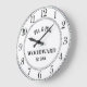Une horloge murale de mariage rustique moderne blanche avec monogramme et date d'établissement. Simple et minimaliste.
