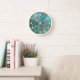 Décorez une pièce avec cette horloge murale acrylique avec des chiffres blancs qui présente une image des belles couleurs bleu turquoise de la pierre minérale de Chrysocolla. Sélectionnez votre style et votre taille d'horloge avec la couleur de la main. Utilisez pour décorer un salon, une salle à manger, une cuisine, une chambre ou toute autre pièce.
