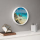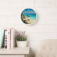 Une horloge avec une belle photo de Tulum, Mexique. Eaux turquoise sur un rivage sablonneux. Le vent balaya les palmiers qui soufflaient dans la brise près d'une falaise escarpée. Apaisant et relaxant.