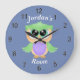 Horloge murale personnalisée pour enfant avec lavande personnalisable arrière - plan et un adorable petit hibou vert, lavande et beige. Customisez la couleur, le nom, la chambre ou ajoutez votre propre texte à l'arrière - plan, cette horloge fait un grand cadeau pour votre enfant spécial! Tous nos produits peuvent être conçus sur mesure pour répondre à vos besoins sans frais supplémentaires. Contactez-nous simplement par l'intermédiaire de notre magasin. Coordonner les produits disponibles : Demandez-nous !