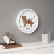 Illustration originale de Destei d'un mignon acajou rouge ou d'un manteau rougeâtre couleur Golden Retriever race dog. La face de l'horloge est faite de lignes simples et modernes. Il y a aussi une zone de texte personnalisable pour un nom ou un autre texte personnalisé.