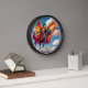 El reloj de pared que describes tiene un diseño elegante y distintivo. Su biselado negro le da un toque moderno y sofisticado, mientras que la imagen de San Miguel Arcángel, que adorna la carátula, aporta un elemento espiritual y simbólico.