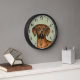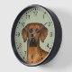 Illustration originale de Destei de la tête d'un chien de race Rhodesian Ridgeback mignon. La couleur arrière - plan est verte avec une texture décorative. La texture peut être enlevée et la couleur arrière - plan peut être changée en n'importe quelle autre couleur, si vous le souhaitez. Les heures sont marquées de chiffres. Les heures et minutes sont affichées avec une face pointillée d'horloge.