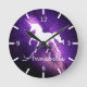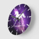 Horloge Ronde AJOUTER LE NOM / Beau espace violet Unicorne