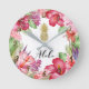 Horloge Ronde Aloha Fleurs Tropicales Floral Chic Gold Ananas