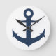 Horloge Ronde Ancre nautique bleu marine