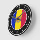 Andorra Flag Elegant Round Clock with the Andorra flag posied in the middle and lovely white clock numbers on the clock edge. Delightful black background with the white oval element finalize the design putting emphasis on the elegance. Beautiful combination of black and white with the skillful integration of the national flag colors make this clock the perfect gift and the great show piece on the wall. © 2022 CountriesOfTheWorld