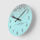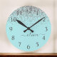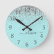 Horloge Ronde Aqua bleu Turquoise Parties scintillant argent Mon