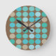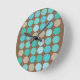Horloge Ronde Aqua Blue Teal & Brown Dots Pattern