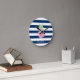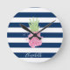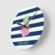 Horloge Ronde Aquarelle Ananas Tropical ,Rayures Bleu Nuit