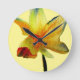 Horloge Ronde Aquarelle jonquille jaune art Fleur de printemps