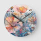 Horloge Ronde Aquarelle Motif de fleurs
