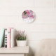 Horloge Ronde Aquarelle rose florale & or moderne