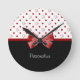 Une horloge girly avec les coeurs rouges mignons et le pois à la mode. Personnalisez en ajoutant votre nom. Perfectionnez pour une fille de l'adolescence élégante dans l'amusement et la mode ! L'image est plate sans embellissements littéraux.