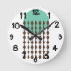 Cette horloge murale présente un design moderne du milieu du siècle avec un cercle vert mer avec des chaînes de diamants brunes.