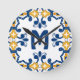 Horloge Ronde Avec 💛 initial 💙 bleu et jaune Azulejos