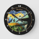 Elégante horloge murale d'art / Patriotique Barcelone célèbre Lizard Statue Fontaine Horloge. Maison d'un magnifique Parc Guell à Barcelone fait cette fascinante statue en mosaïque de lézard craché d'eau (de Gaudi) fabuleux souvenir, cadeau original de Catalogne / Espagne. Horloge murale décorative pour votre maison, maison de vacances, rappel anniversaire de vos voyages, cadeau d'art de jour pour les mères. Photographie originale/Art/Design par work4dream.